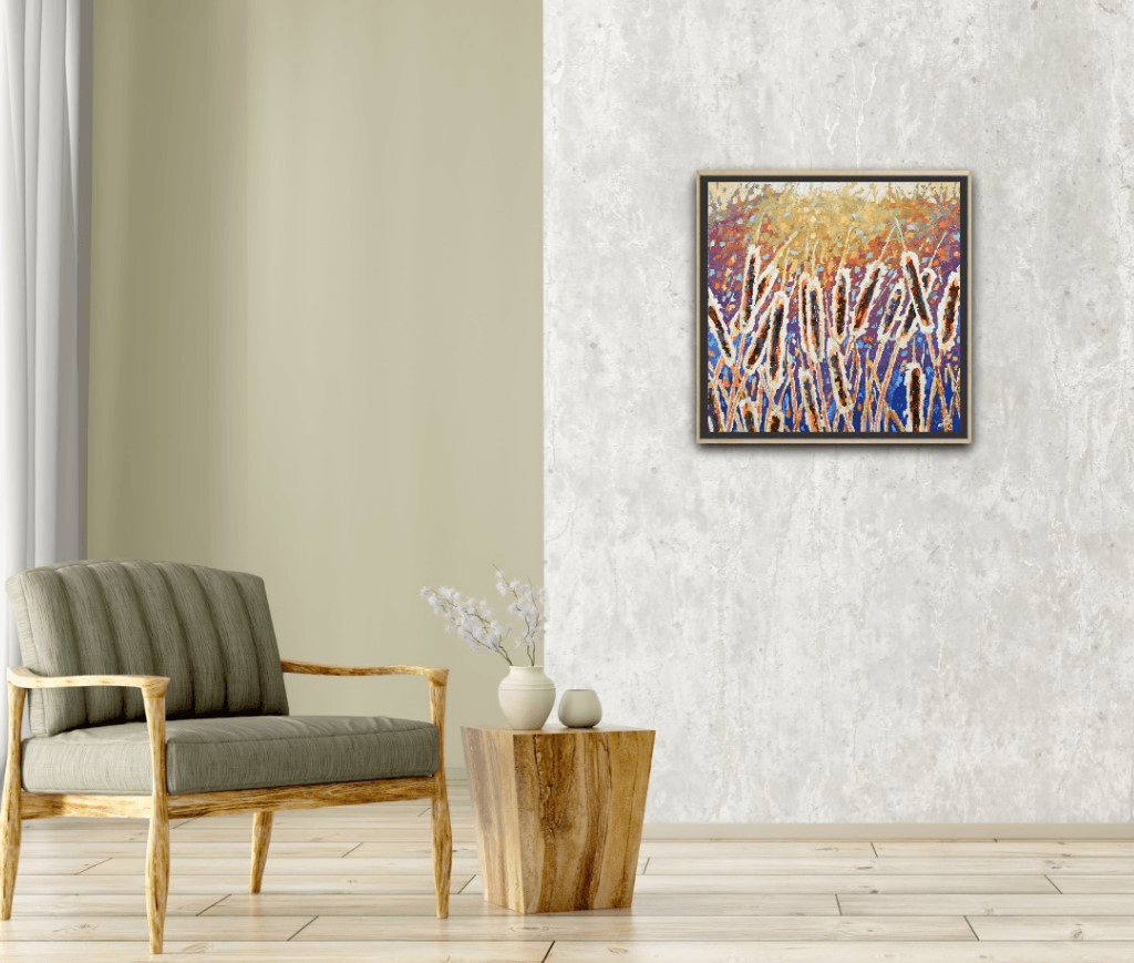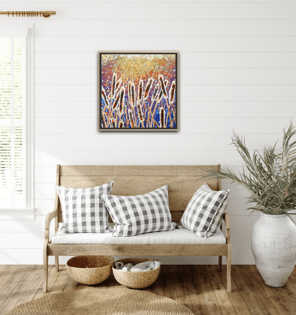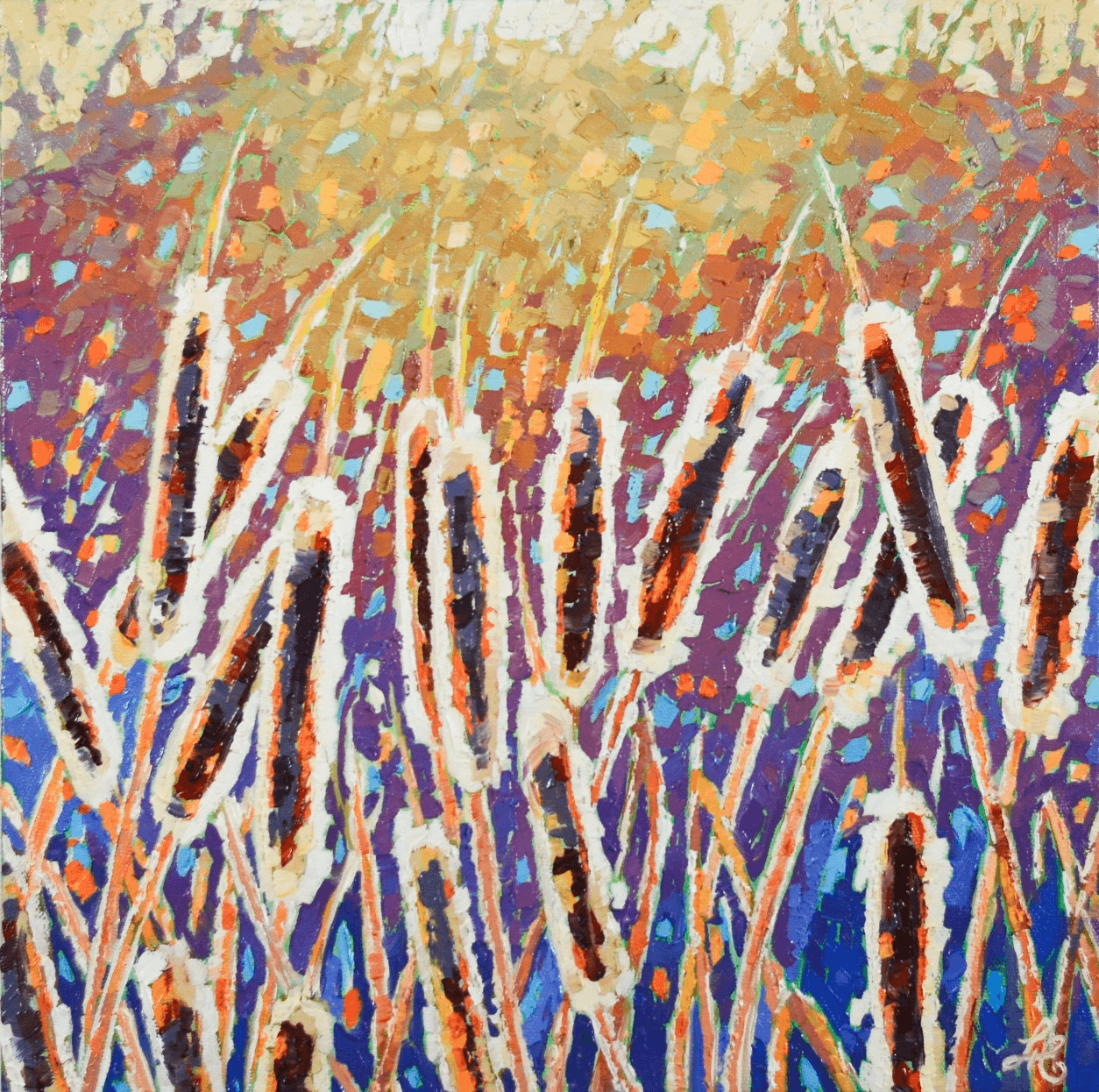 Back lit cattails glimmering in the light of a glowing summer evening where every particle or seed flying in the air is illuminated and radiating heat and life. Nothing wears gold better than Mother Nature and we are all the richer for the privilege of witnessing this wonder!