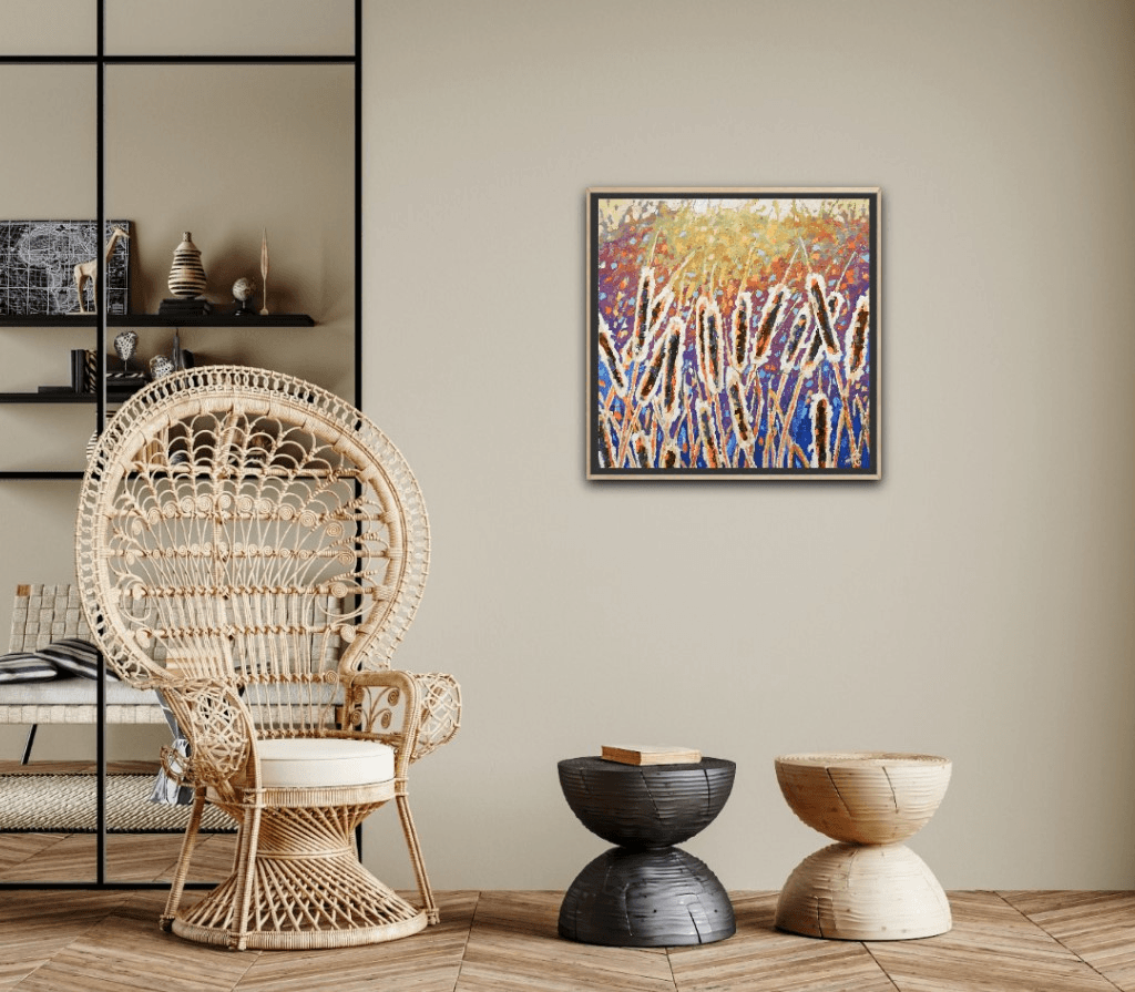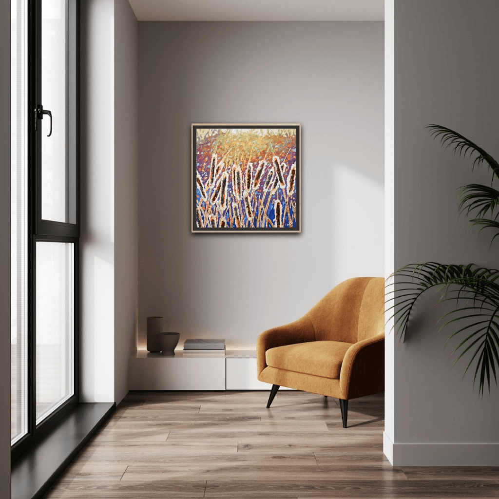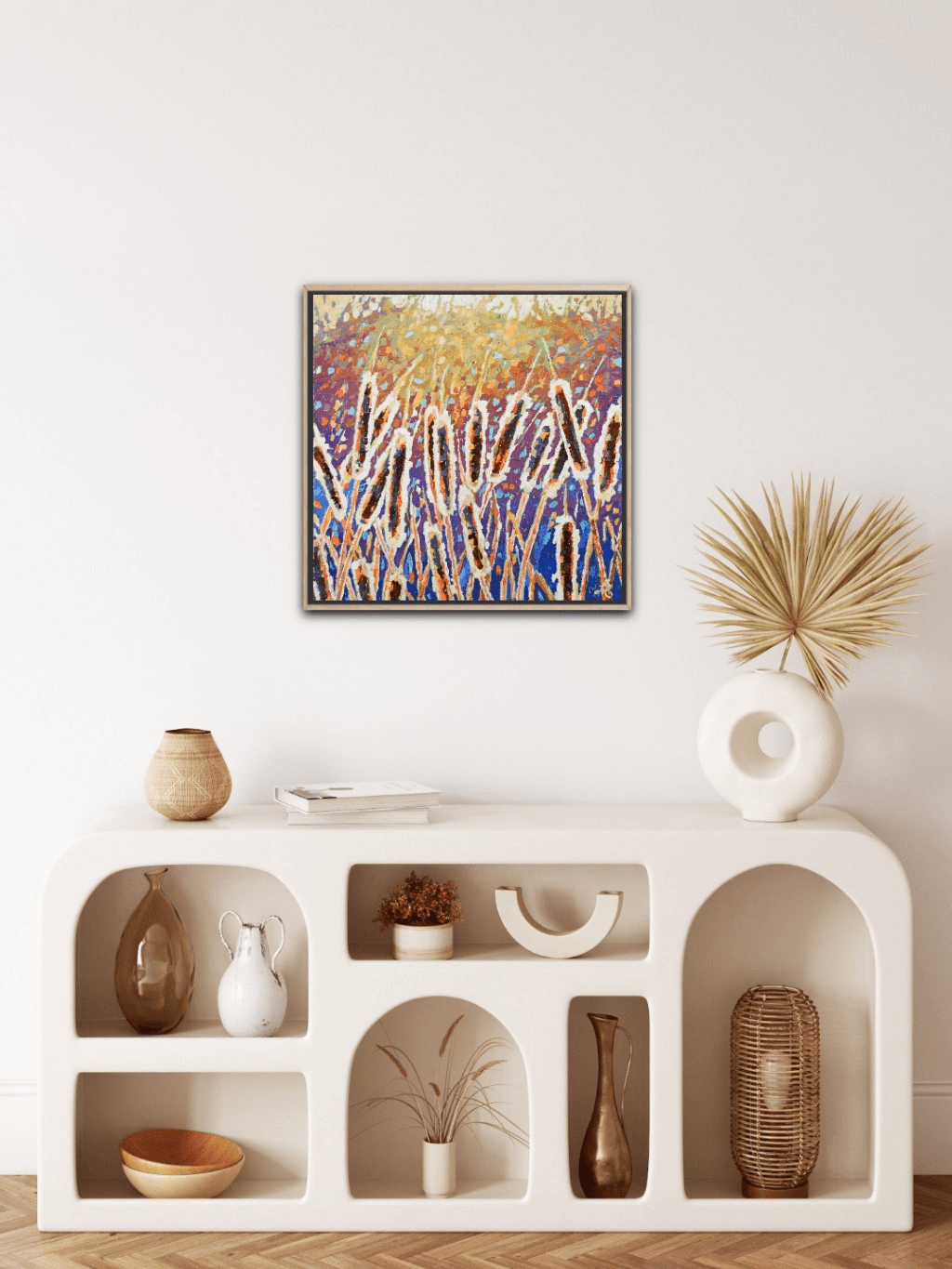 Back lit cattails glimmering in the light of a glowing summer evening where every particle or seed flying in the air is illuminated and radiating heat and life. Nothing wears gold better than Mother Nature and we are all the richer for the privilege of witnessing this wonder!