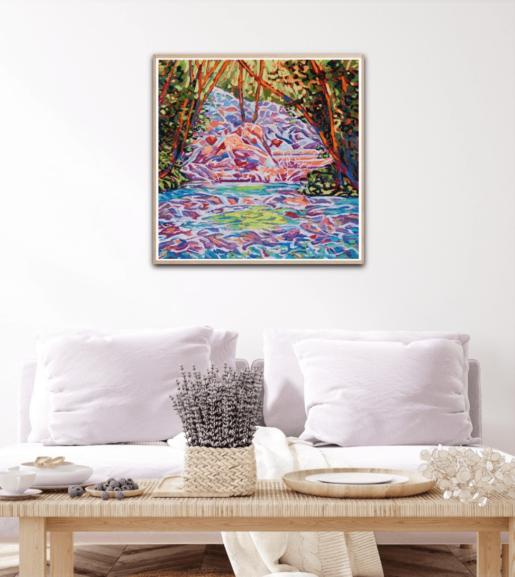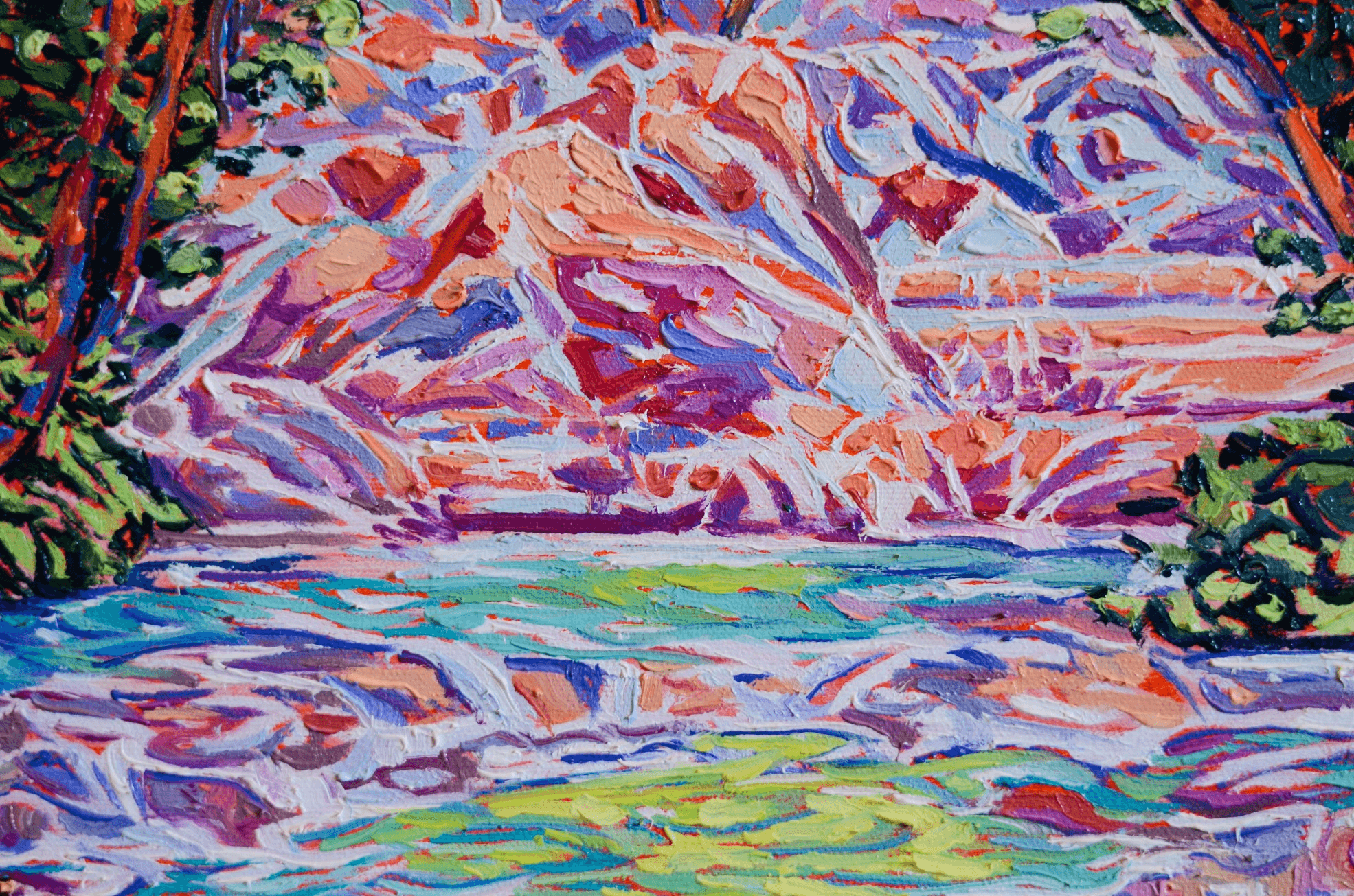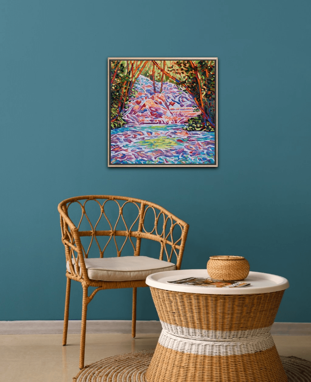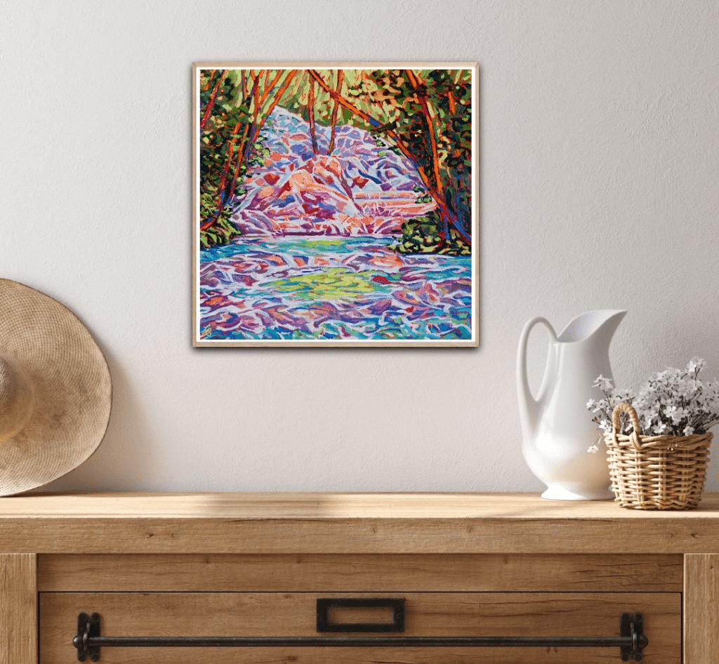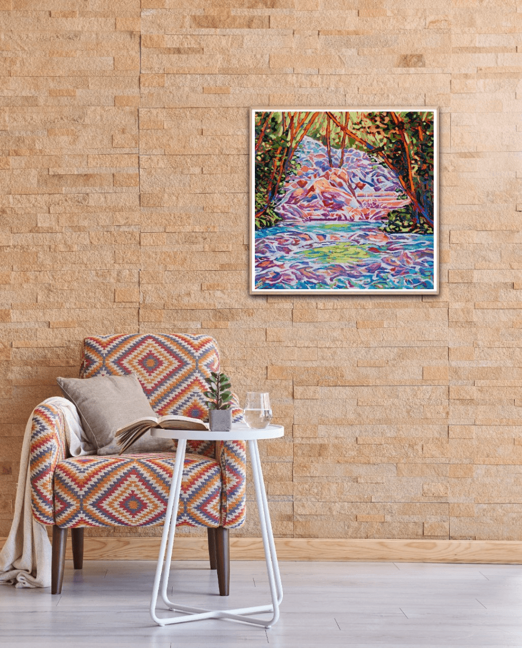I painted this from a reference picture I took years ago while enjoying a stay in Jamaica. The music, culture, beautiful beaches and sunny weather were a balm to the soul. Nature and water were vibrant with life and joy at Dunn's River Falls that I had to put it on canvas.