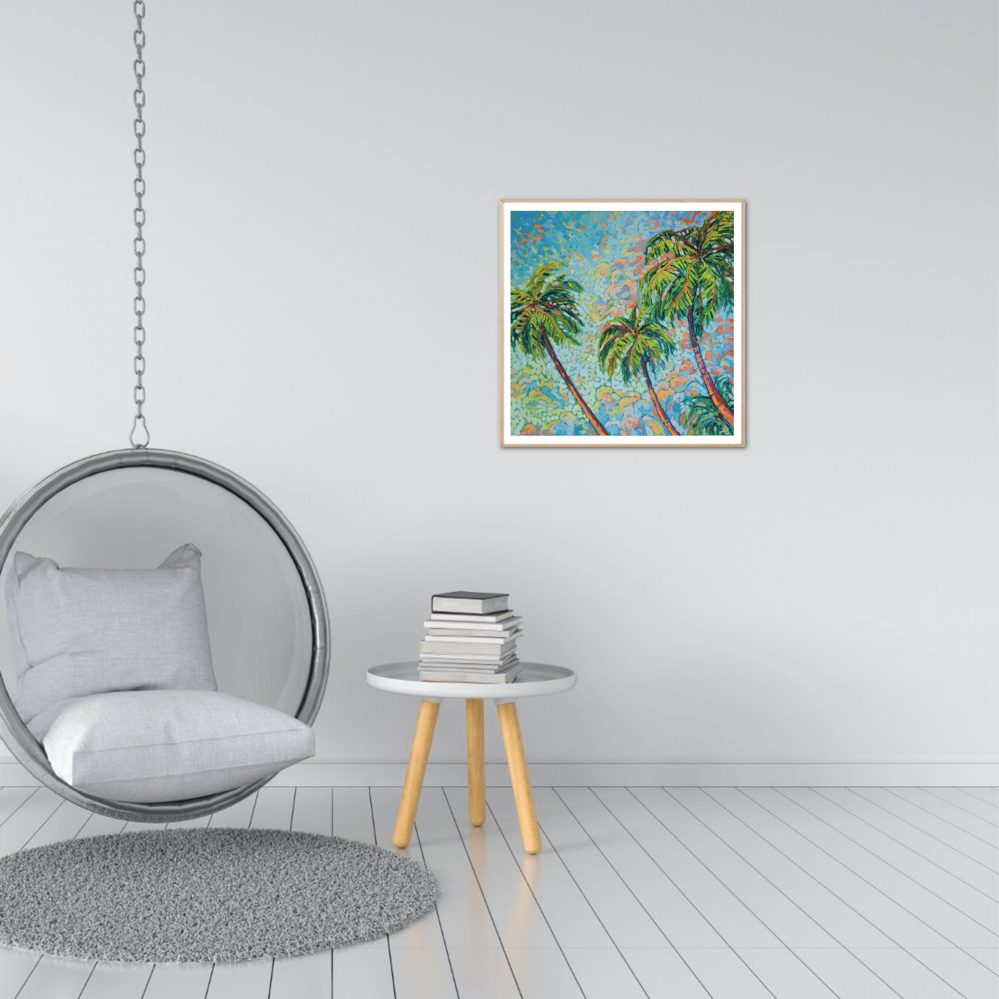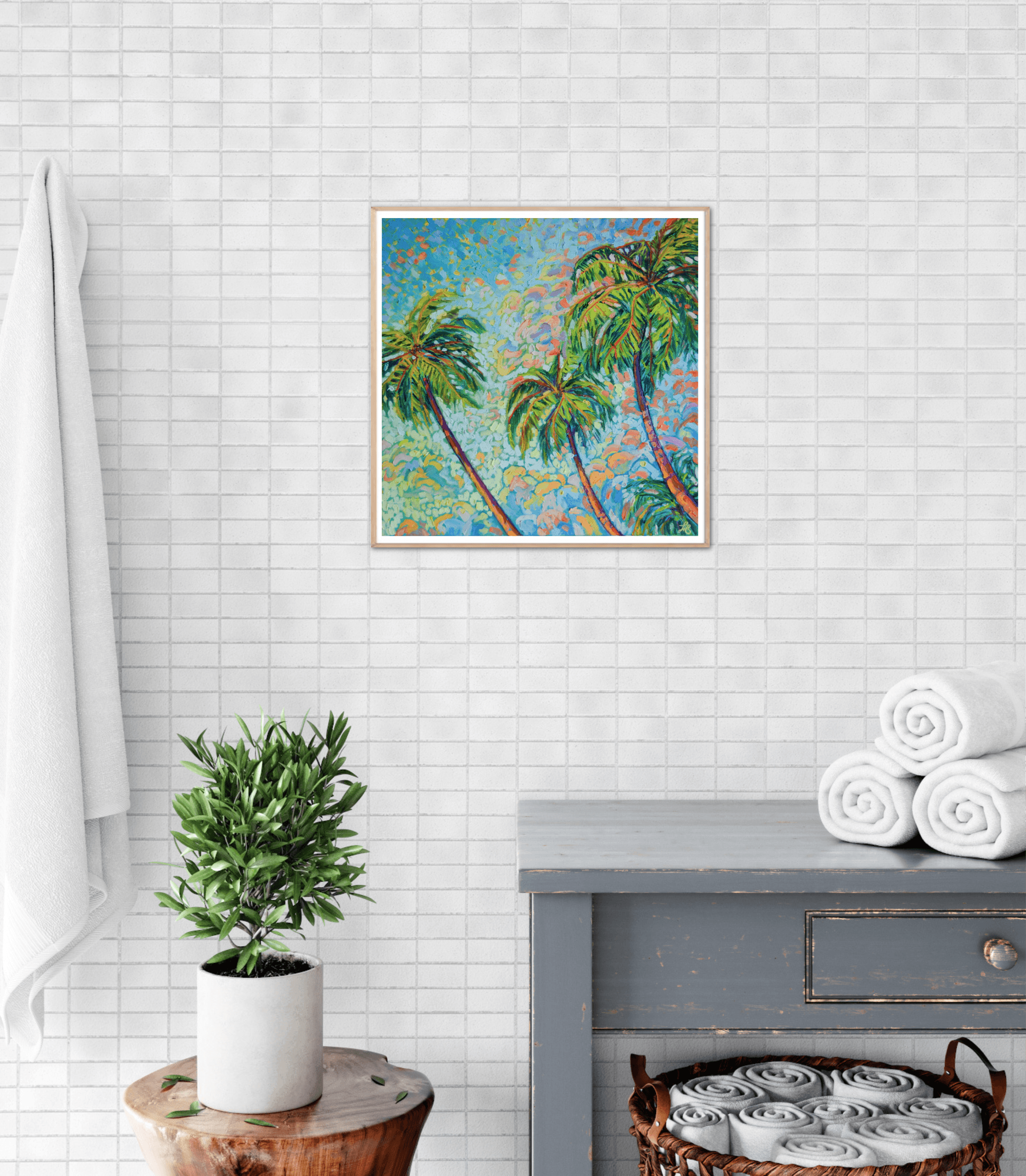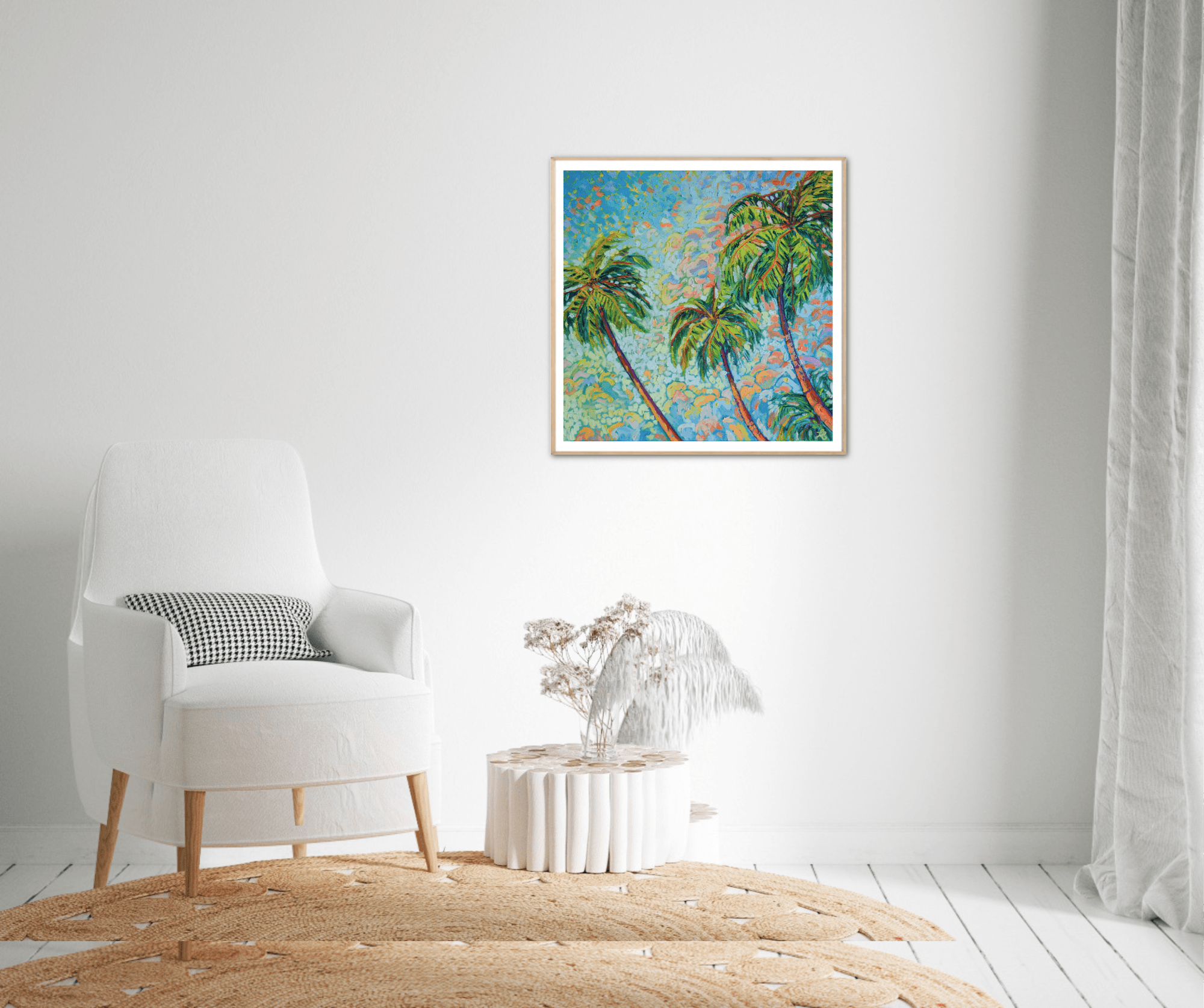 "Evermore" is another declaration of my ever expanding admiration of trees and my undying love for painting them. Palm trees are synonymous with sunshine and summer and I hope this painting can be bring light to the person who gets to take it home.