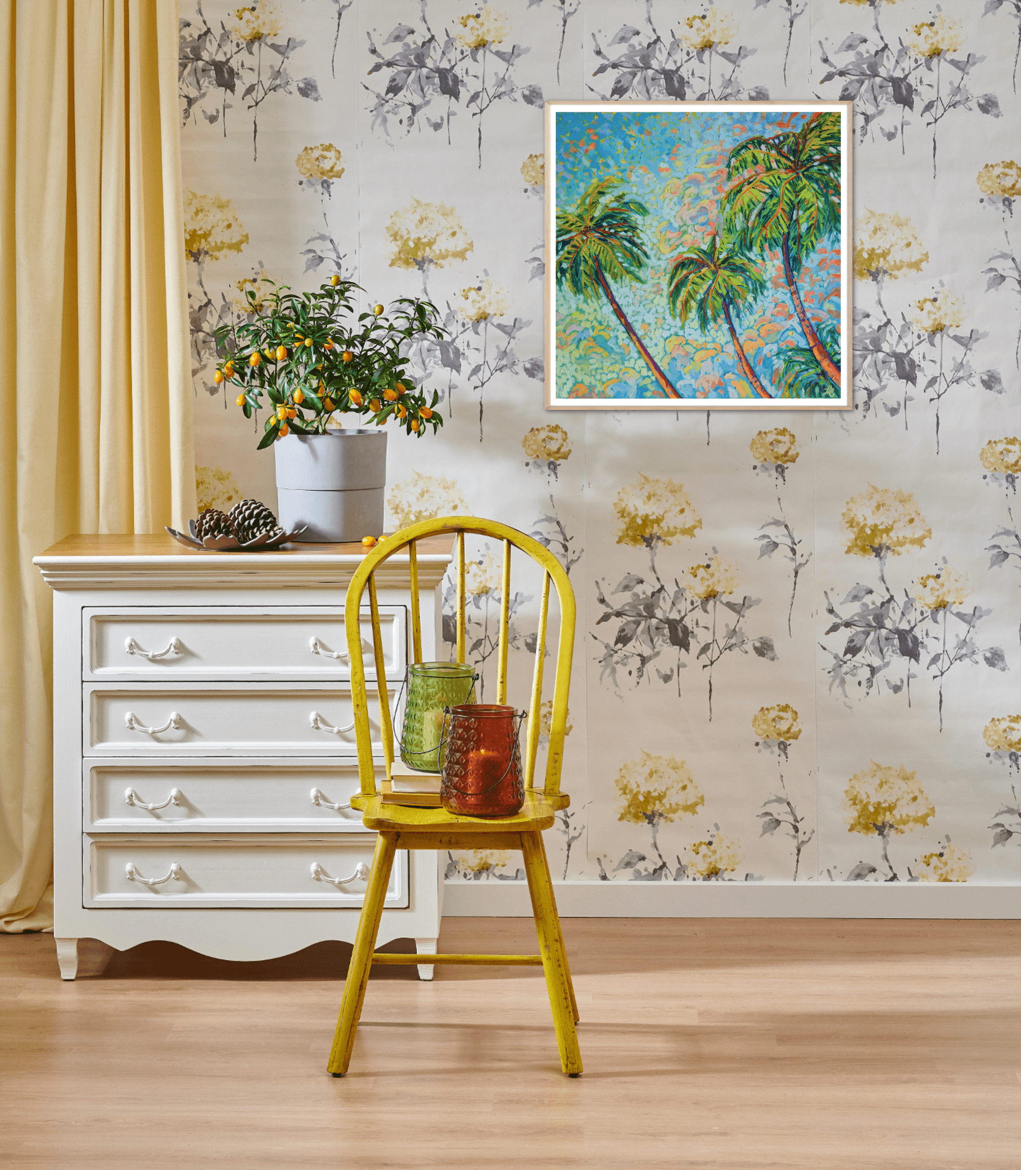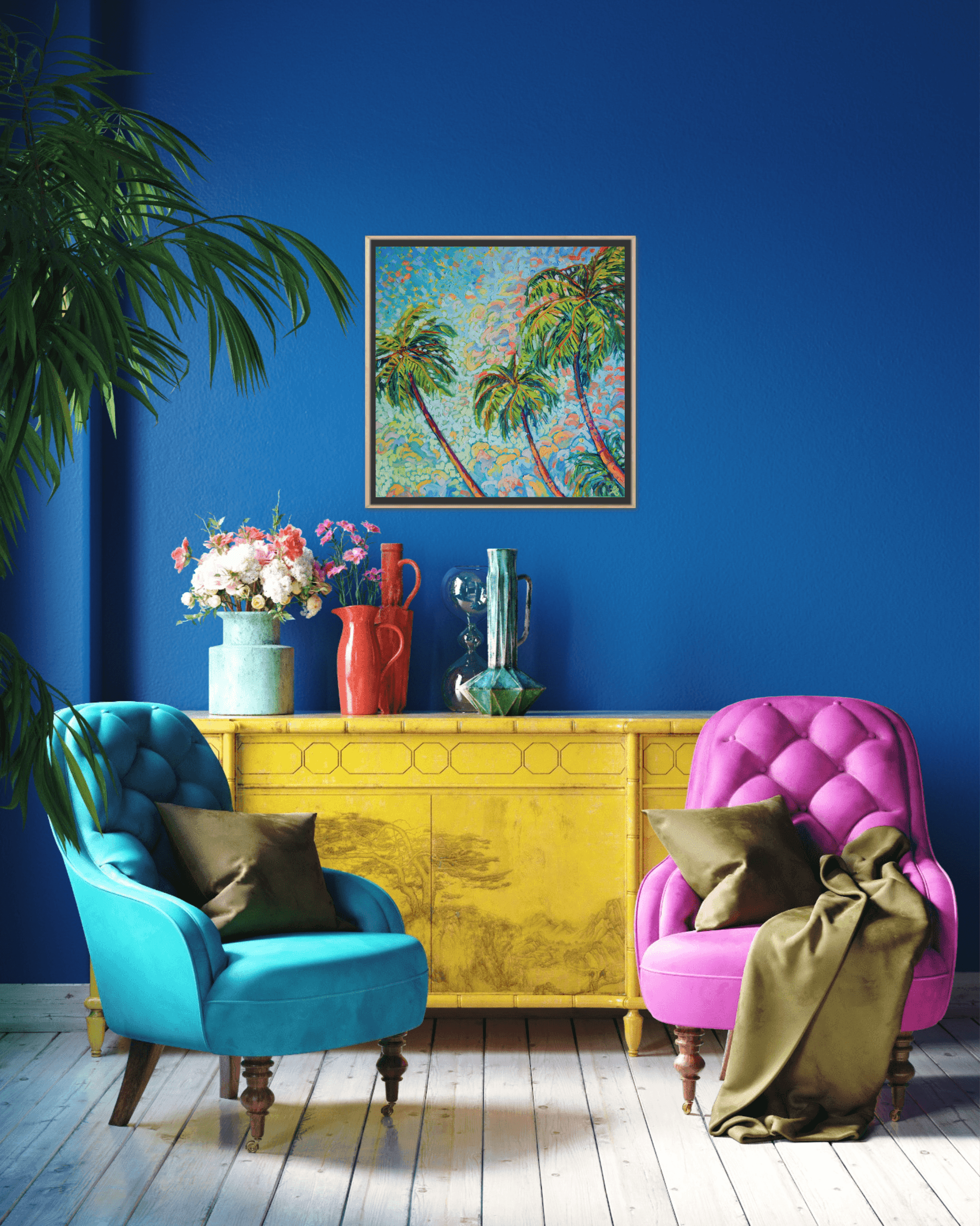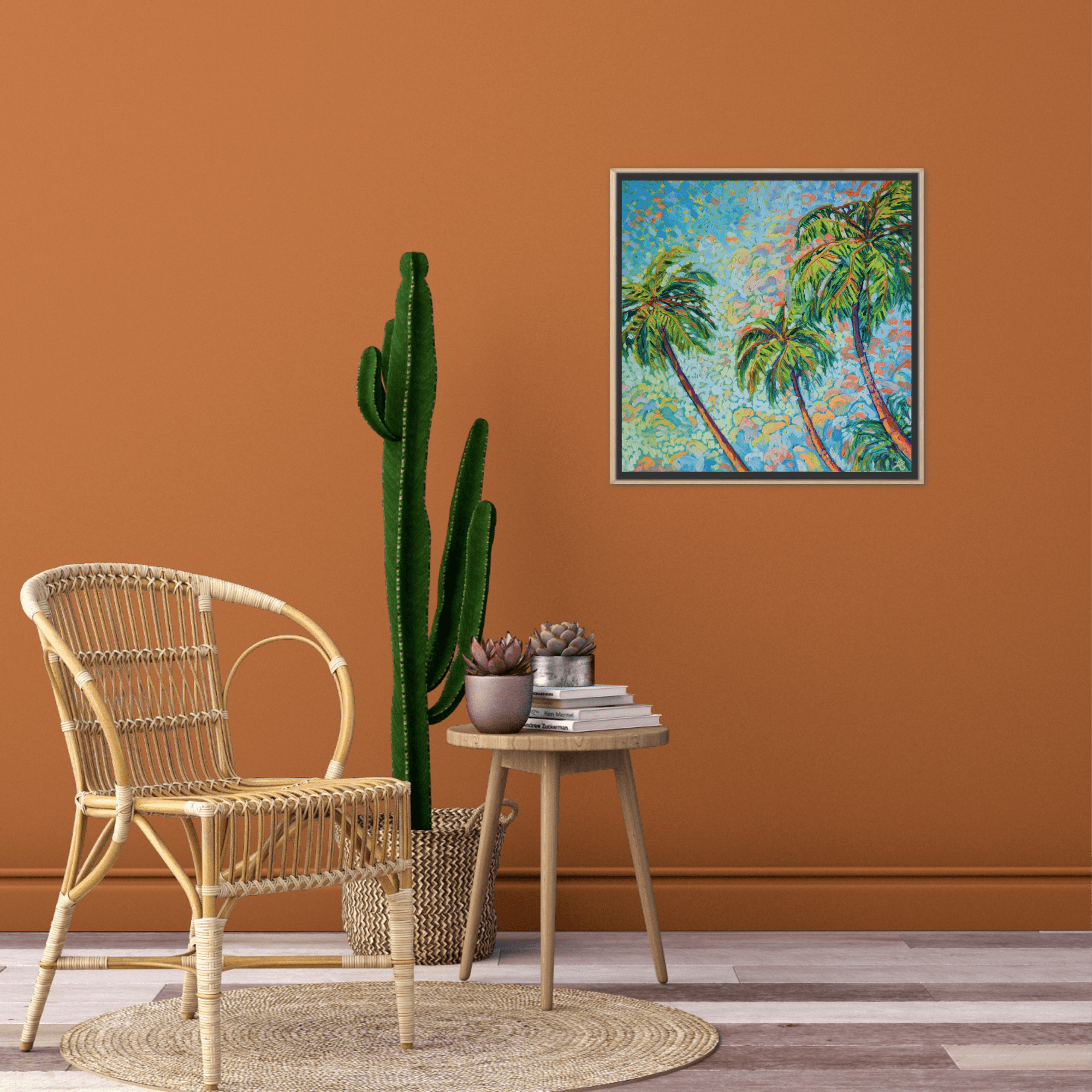 "Evermore" is another declaration of my ever expanding admiration of trees and my undying love for painting them. Palm trees are synonymous with sunshine and summer and I hope this painting can be bring light to the person who gets to take it home.