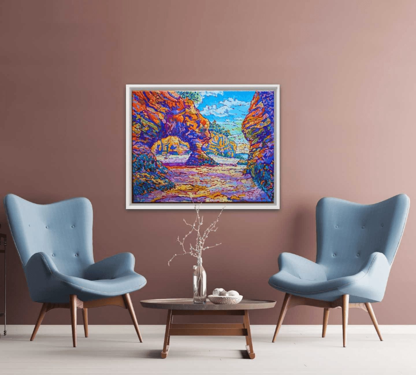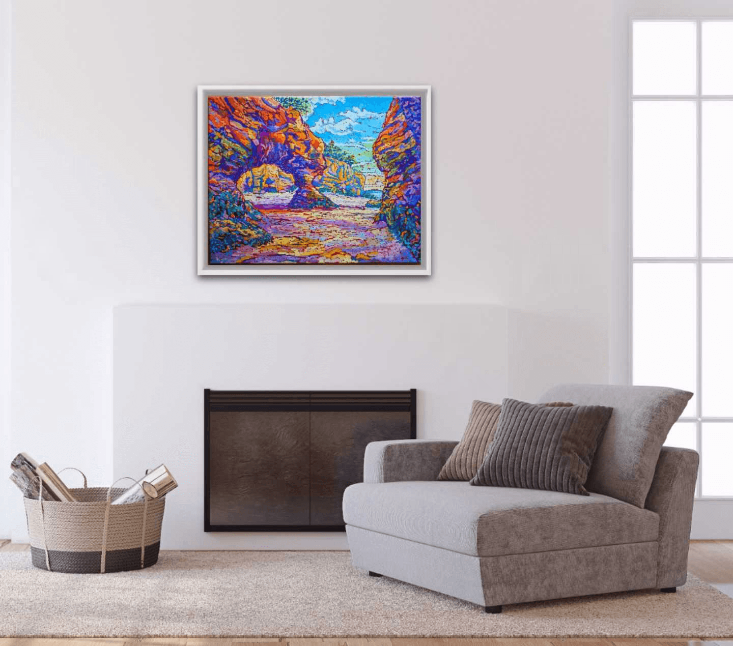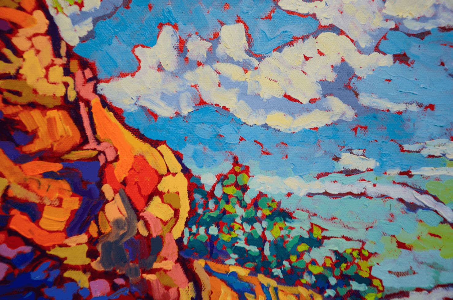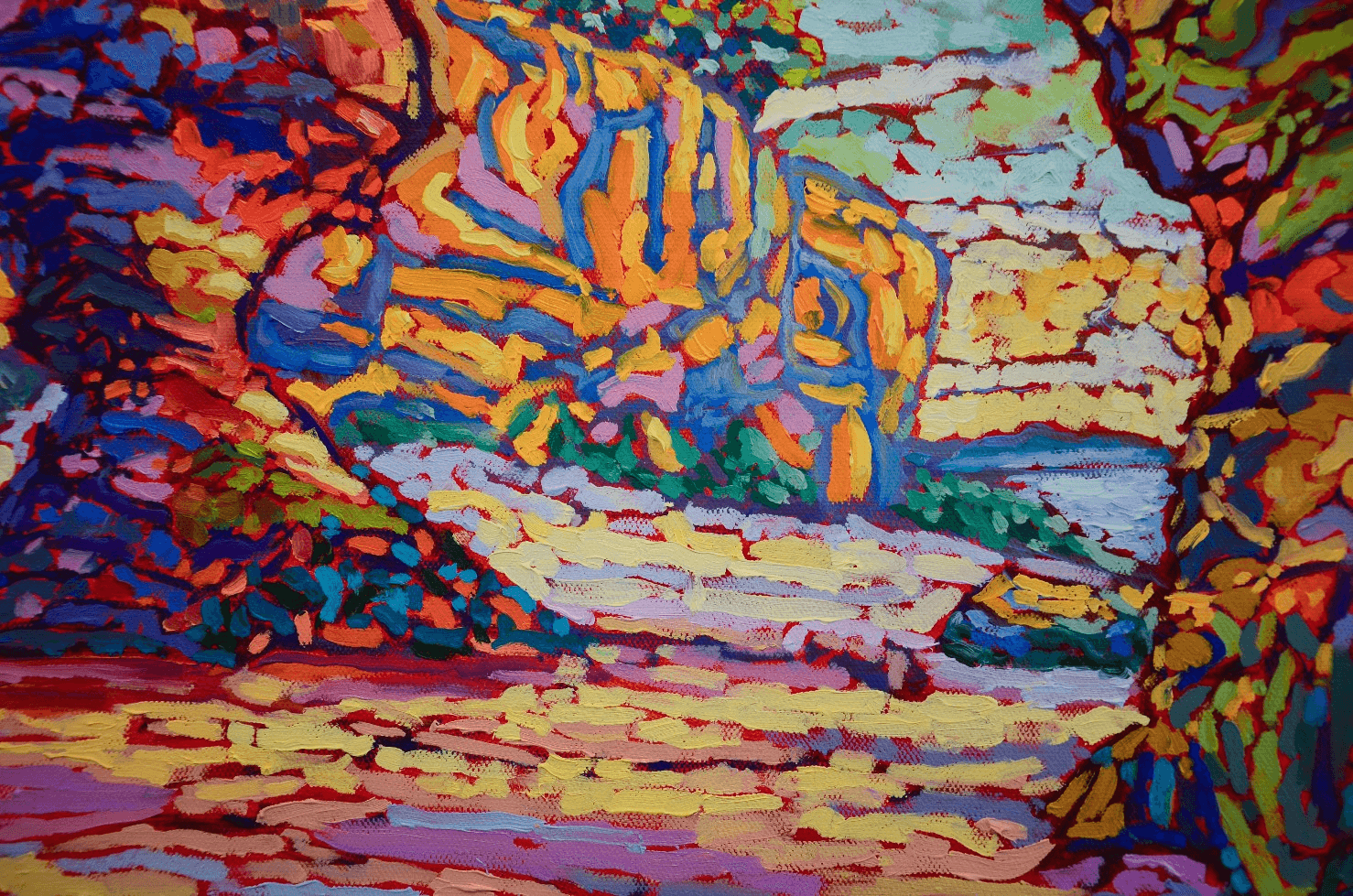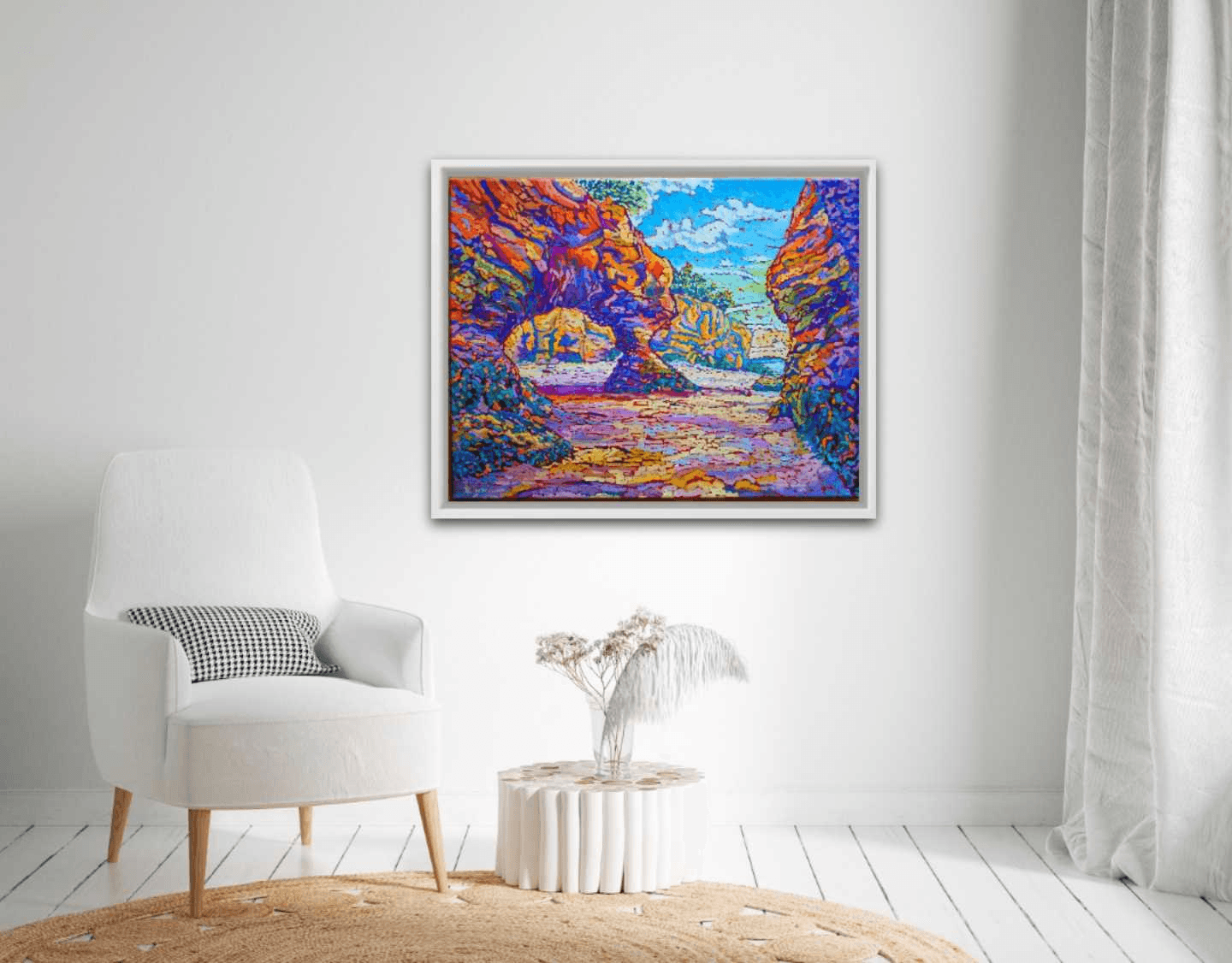 Having grown up along the beautiful shores of the Mediterranean Sea, I have always been fascinated with water, its clarity, its depth, its cleansing and purifying effect on us, its serene quietude, its devastating rage, its power to hold and take away life. I have always loved the sea and the ocean, but also the rivers and lakes.Whenever I used to look out from the windows of my childhood home, the sea was always there like a faithful friend greeting me every day. As I moved and traveled across the globe, this fascination always stayed with me and allowed me to enjoy and marvel over the beauty of such a fragile ecosystem. This being said, of all the shores, coasts, seas and oceans I was very lucky and blessed to see, none has made a greater and more touching impression on me than the rocky, tidal coast of the Bay of Fundy. As I got to walk on the ocean floor of Hopewell Rocks and explore this beautiful, out-of-this-world site, I felt myself transported and taken into a place whose unequivocal beauty is beyond words and comprehension.This is my second painting based on the hundreds of pictures I got to take during my visit there. And as much as I encourage everyone including myself to try and make time to go and witness this magnificent stretch of coast, I also hope that I will manage to transfer a shred of its colossal glory on canvas as often as I possibly can.