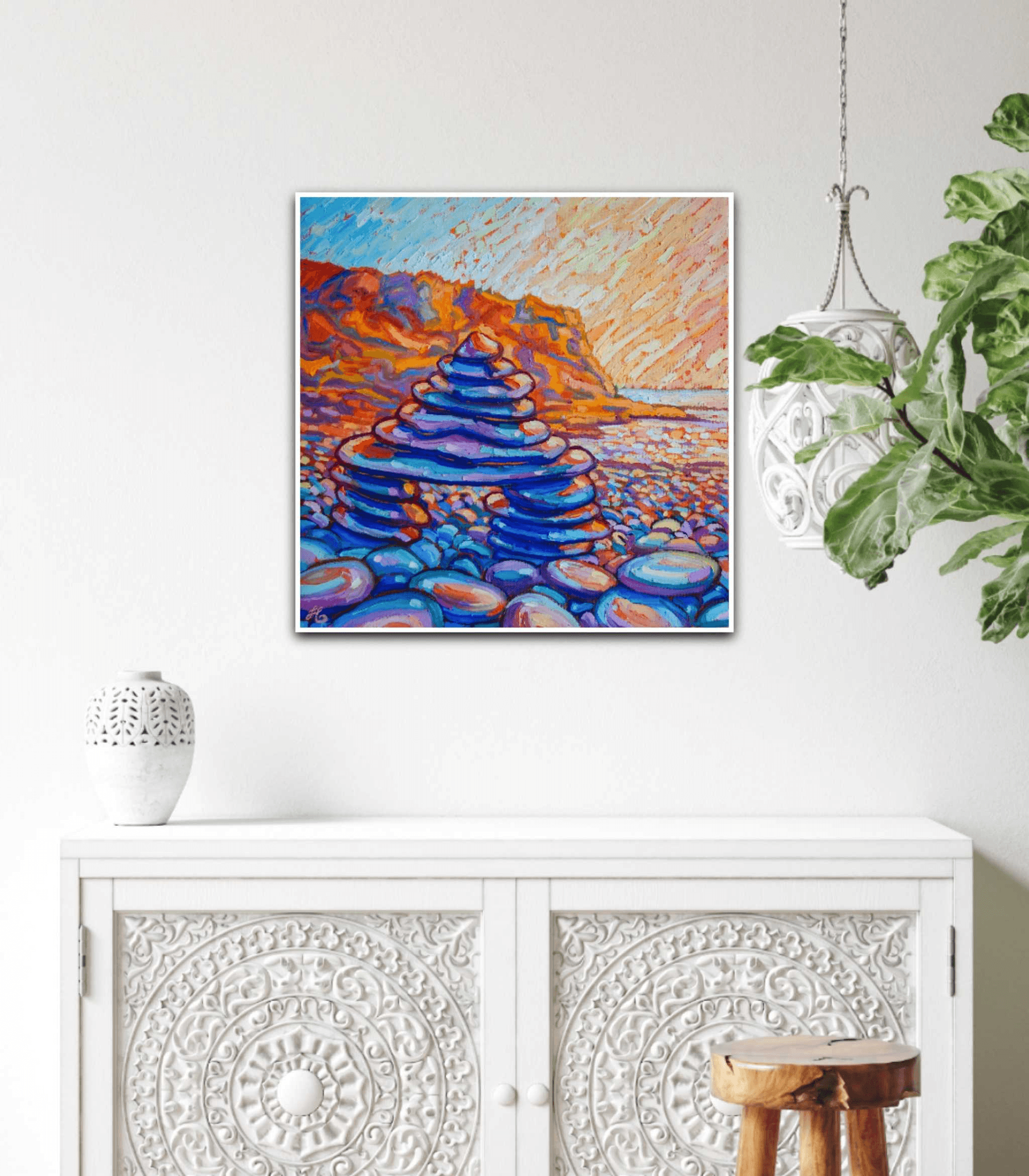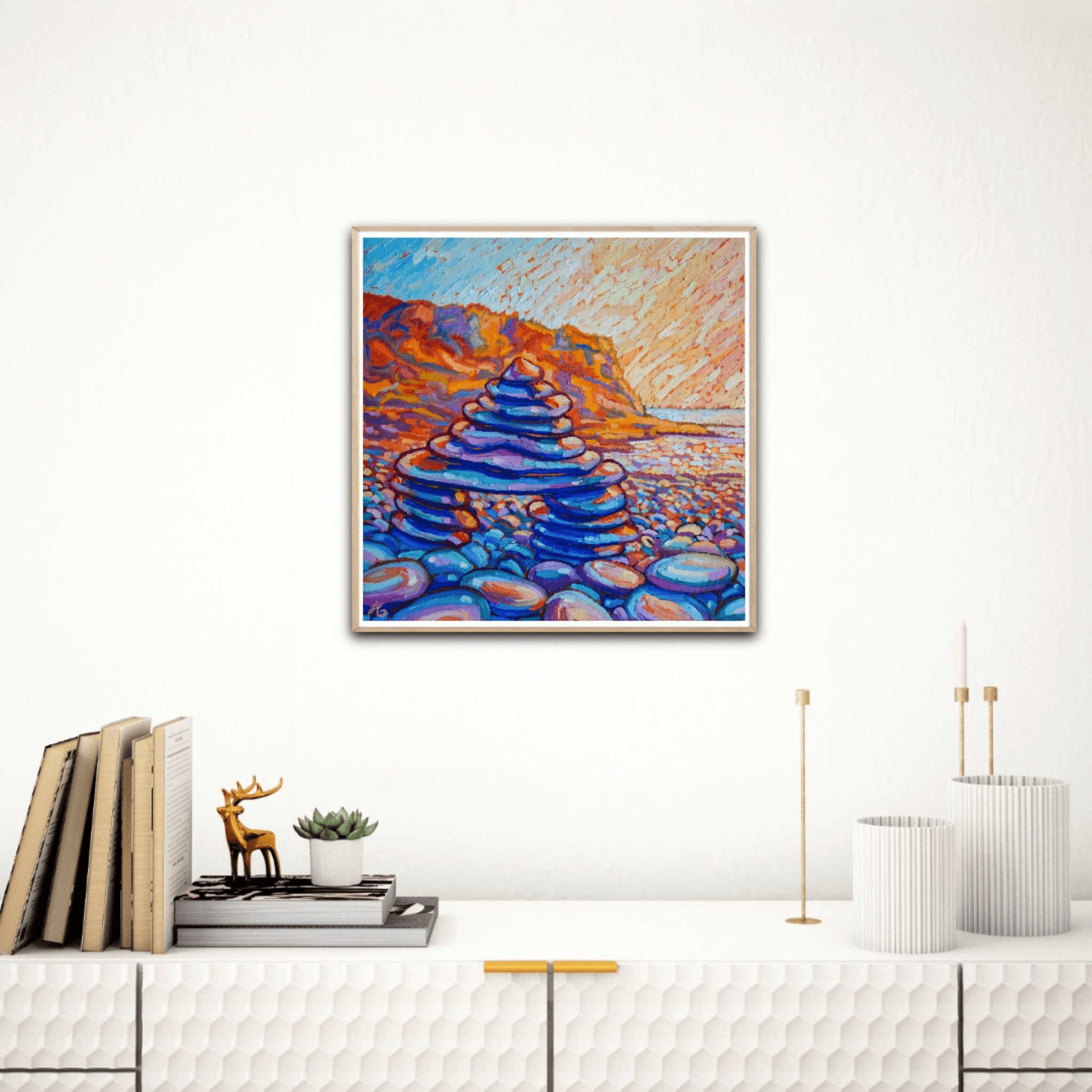 "Pebble's Inukshuk II" is based on a reference photo that I took during a stroll on a pebble beach right next to Cape Enrage, in New Brunswick, a few ...