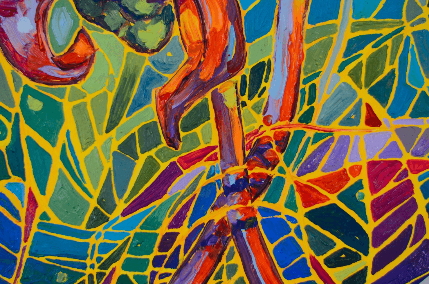 Another beautiful collection of pitcher plants glowing against a vibrant and vivid background. The bright red flowers are engulfed in a beautiful atmosphere of movement, light and shadows. The bold and thick brushstrokes add life and energy, bringing the eye closer and closer to the painting.