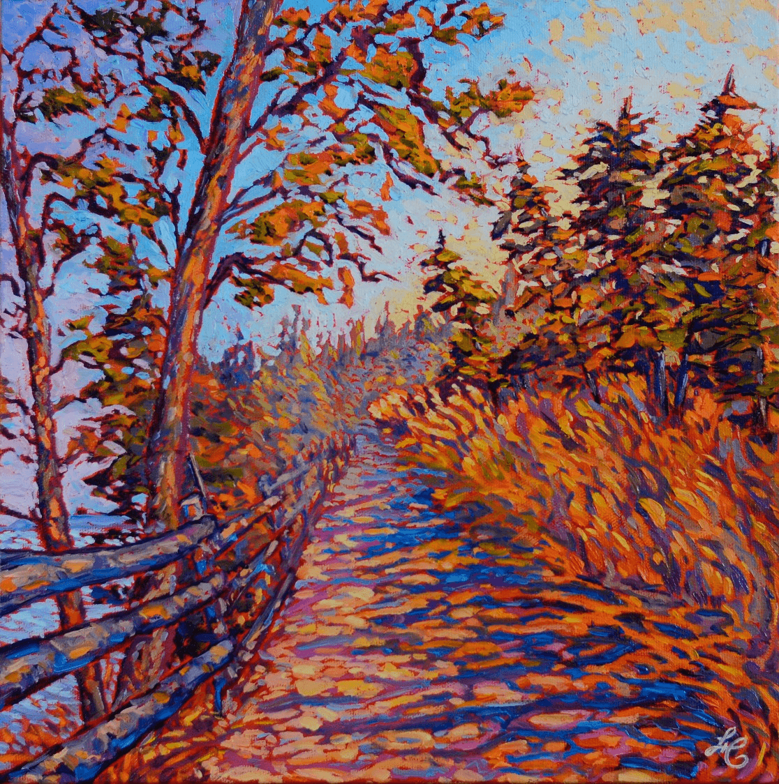 "Road to the Ovens" is inspired by my visit to the Ovens in Novia Scotia: ragged cliffs overlooking the crashing waves of the Atlantic Ocean as the "Ovens" endlessly swallow and spit their salty waters. The walk along the coastline is memorable for its greenery and tall trees guiding the way and swinging to the sways of the fresh, maritime breeze...