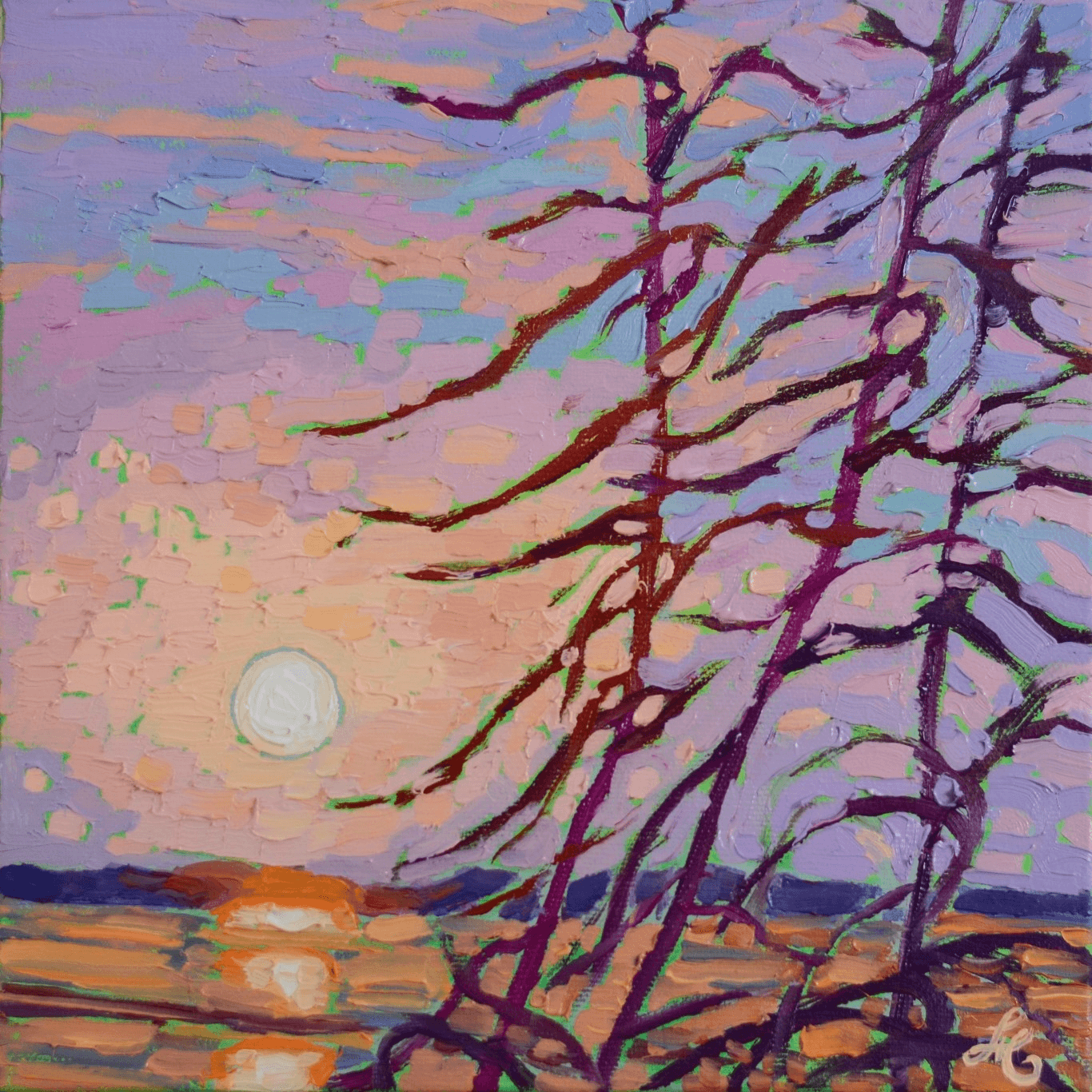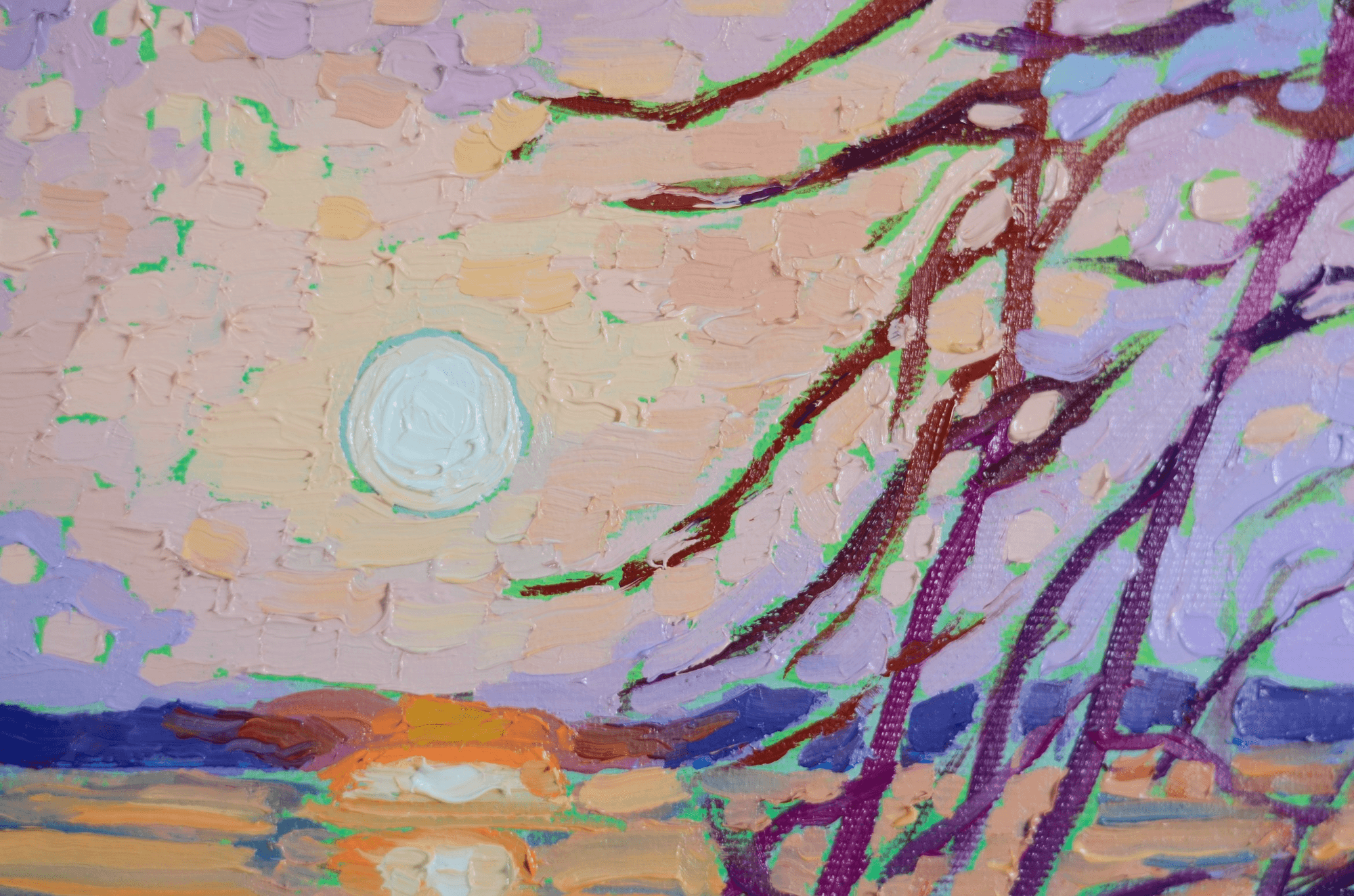 This is painting number two from my mini-series titled "Solar Verses". It is a collection of paintings that I decided should be devoted to the beauty and glory of the sun... I wanted to portray this burning star in the center of our solar system that keeps our world lit and alive in different situations and settings to showcase its many faces and colors...