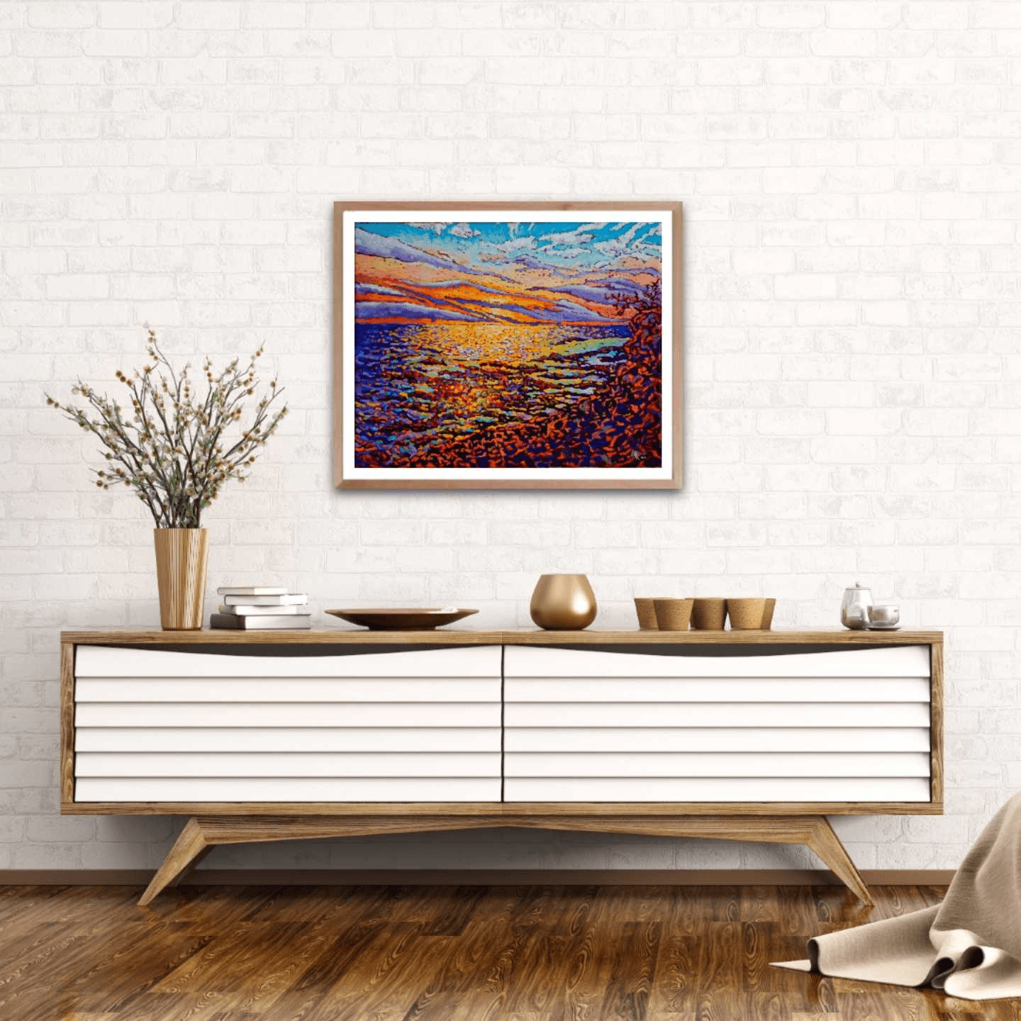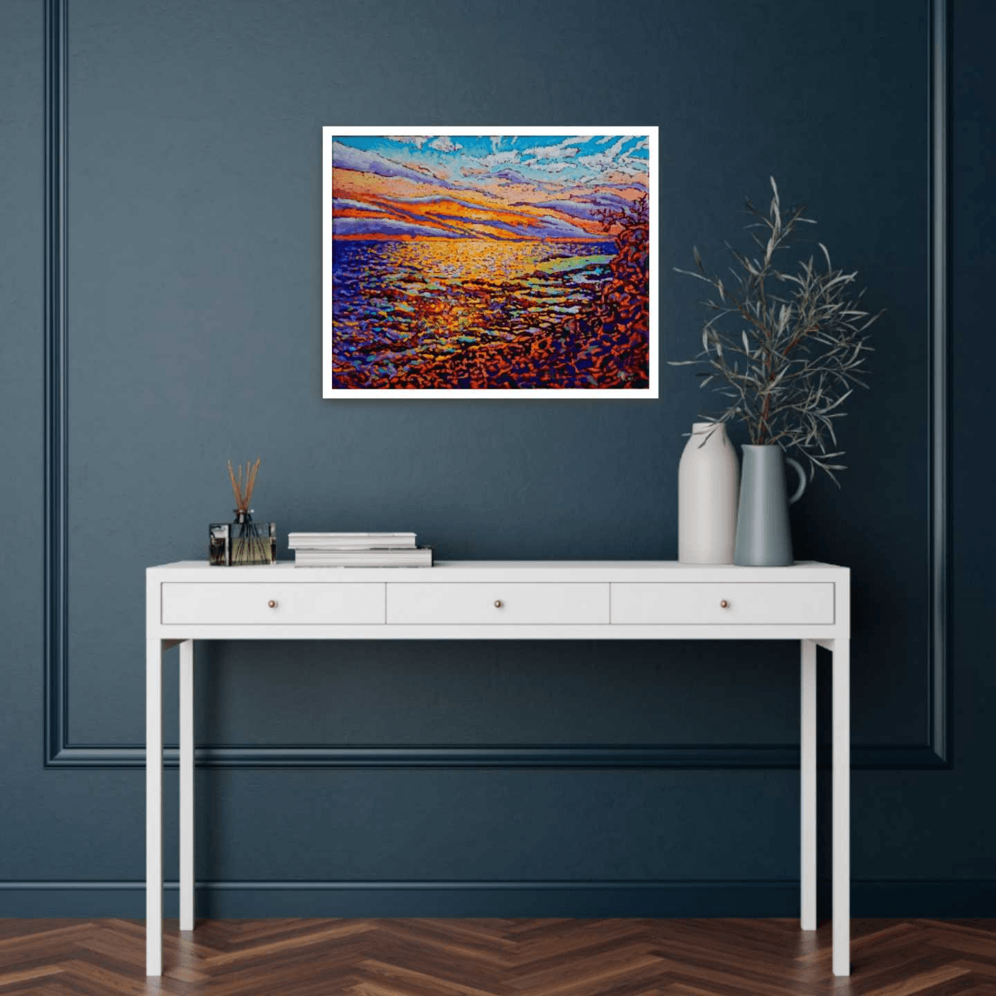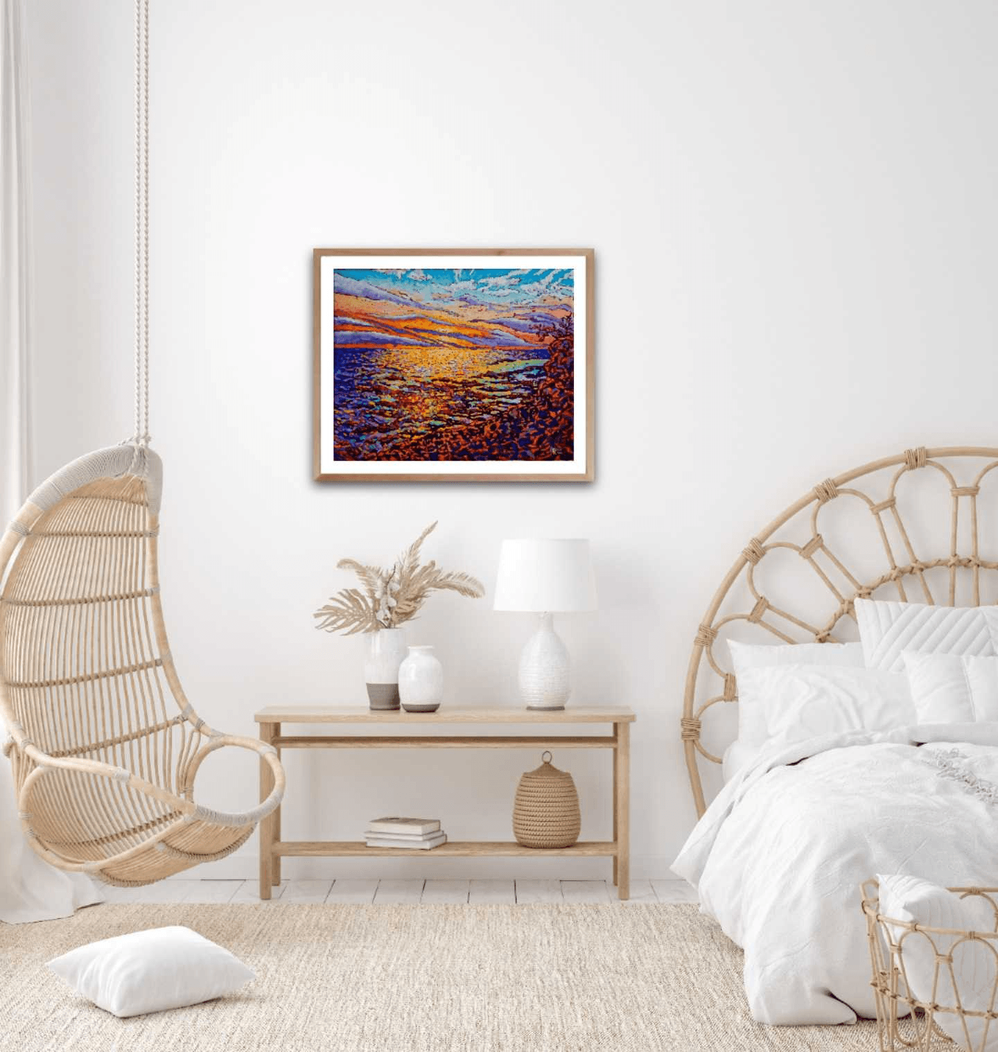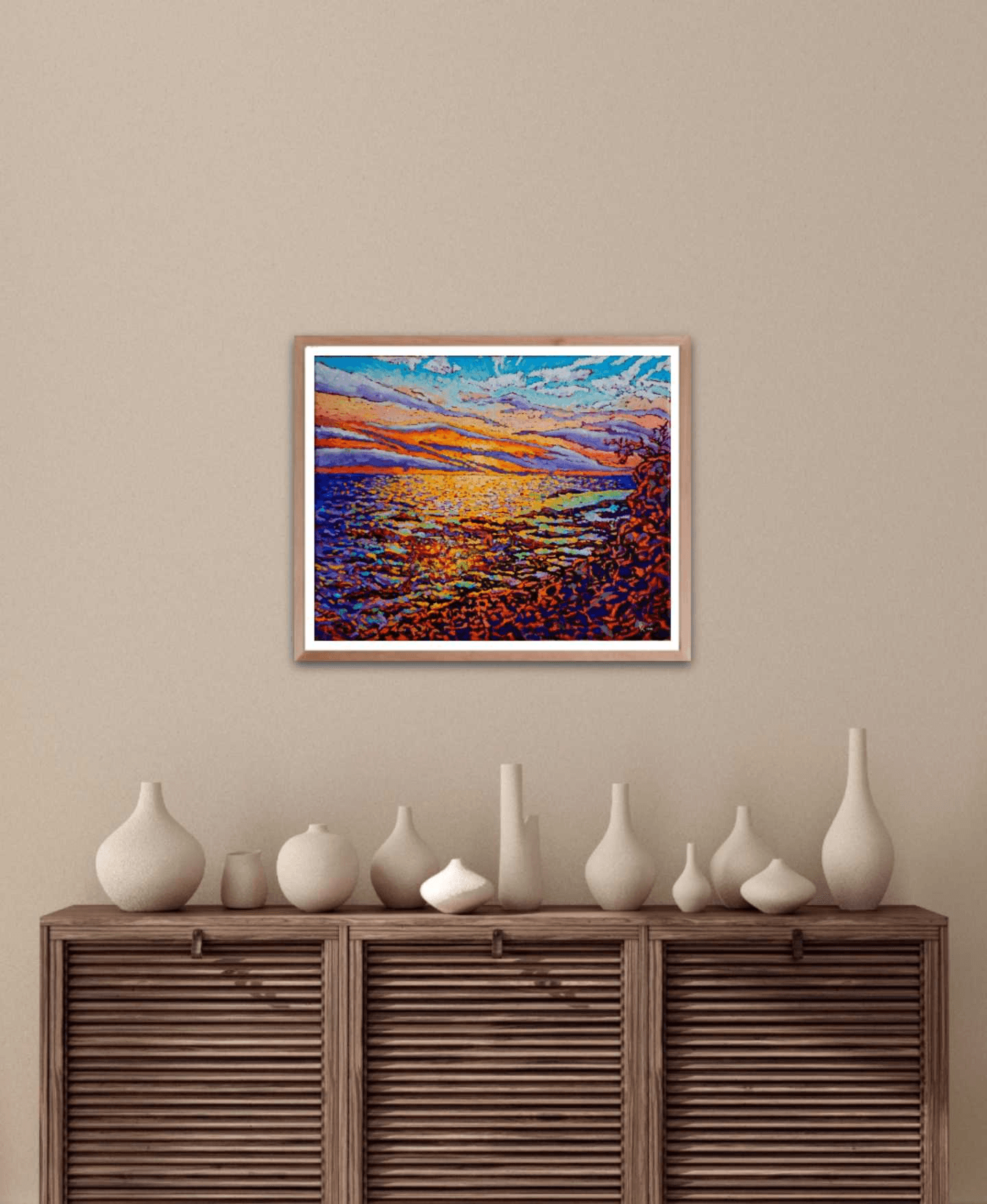 This beautiful sunset brings quietude and calm to the viewer's eyes. Sunsets have always been a favorite amongst painters and there's no exception her...