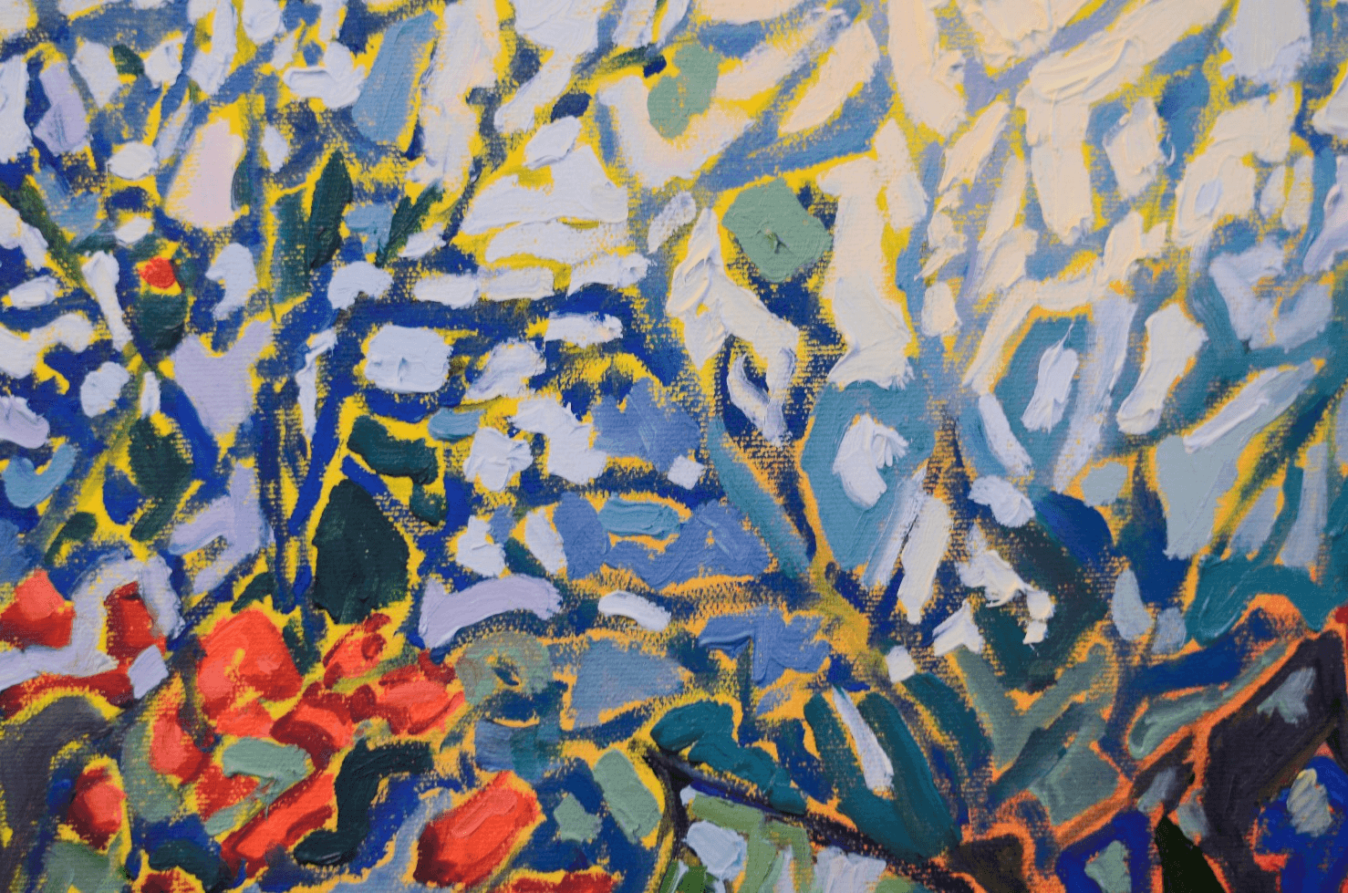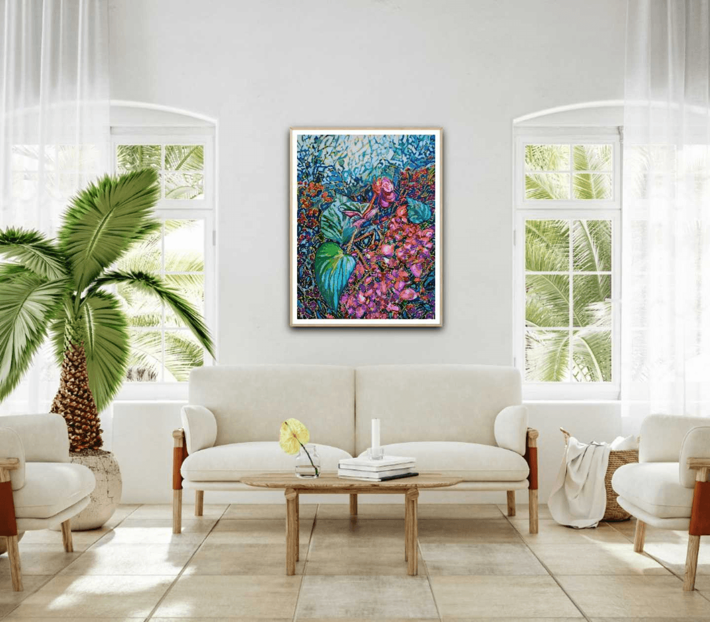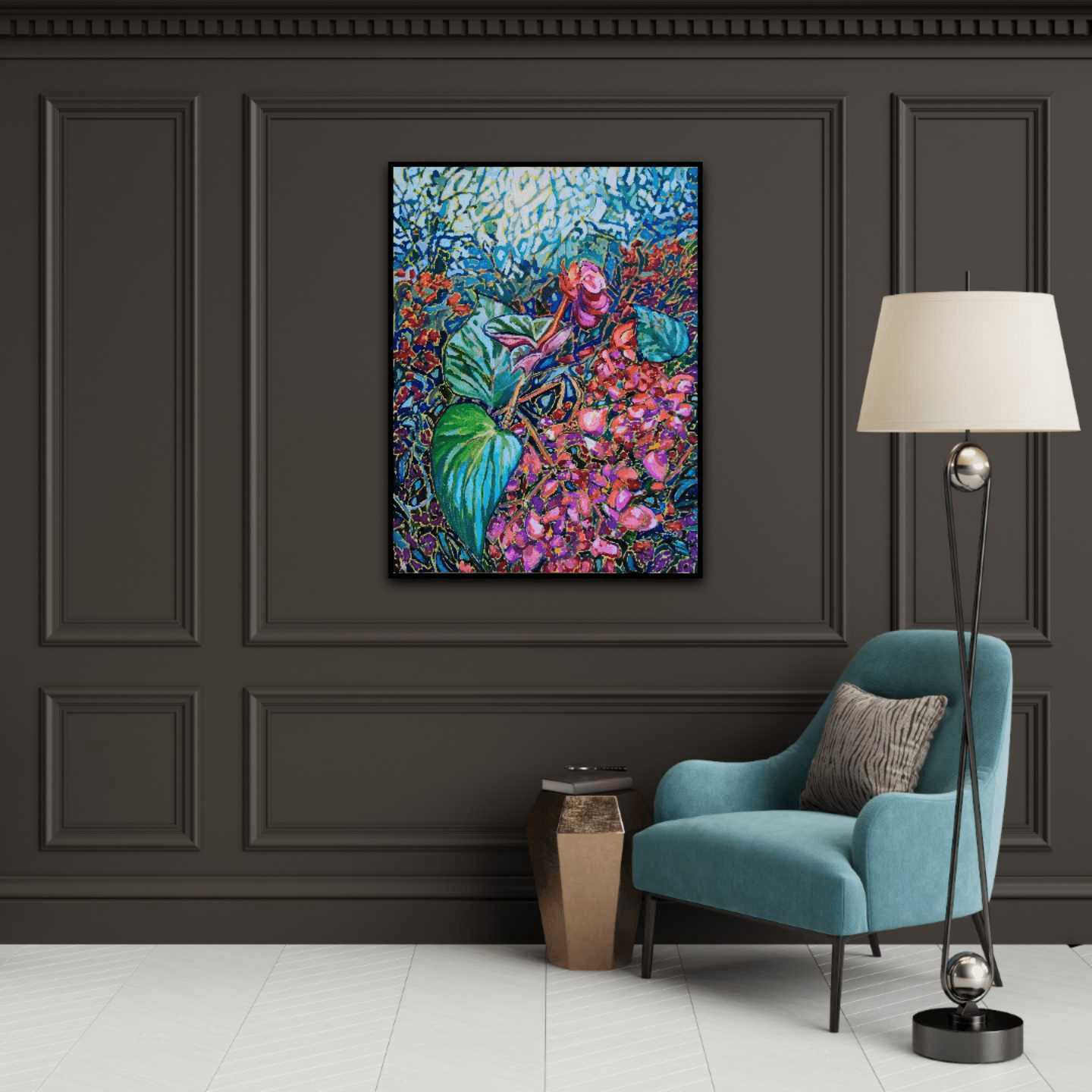 Every summer, I collect multitudes of reference pictures of flowers, be it from hikes, walks or my mother's lavish garden. This one featuring the wildness of Wax Begonias was from a picture I took while walking down the street to go to lunch. This impressionist, colorful print will make a lovely addition to any flower enthusiast's home.