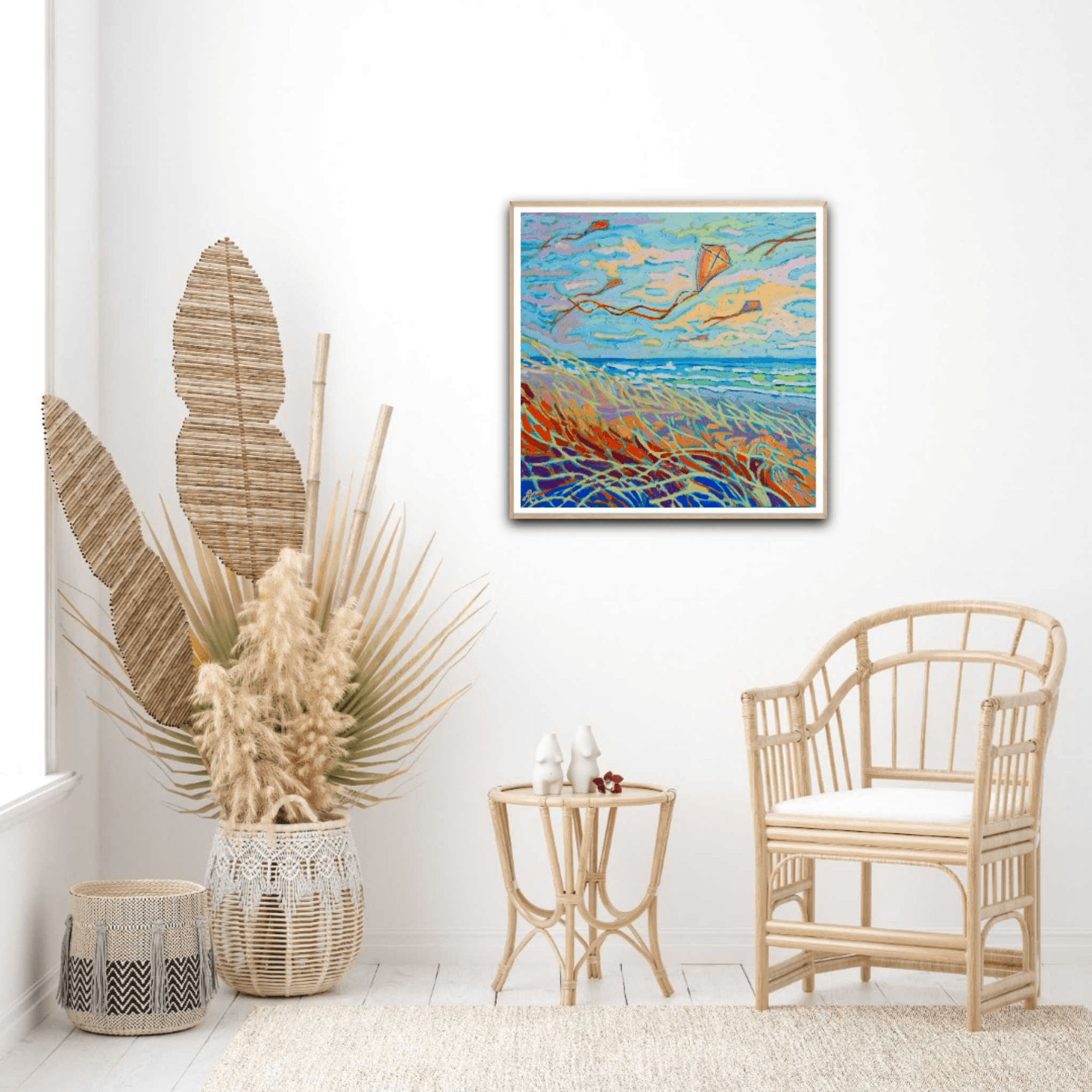 Nothing says summer and freedom like a collection of colorful kites swaying to the sea breeze on a sandy shore. The scene is beautifully framed by the...