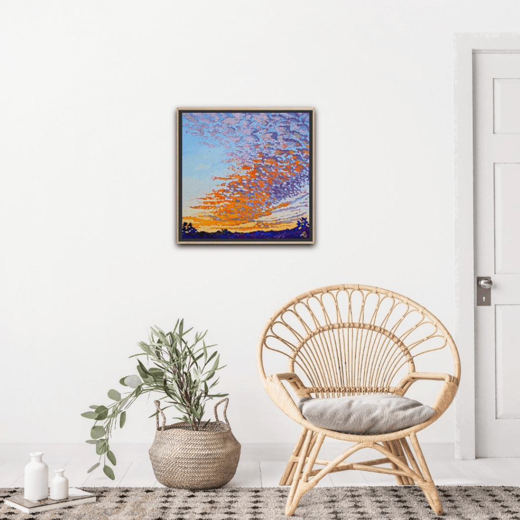 "We Wanderers" portrays a beautiful sunset stretching across the sky with the scattered clouds joining at the horizon to meet the earth below. This painting is a tribute to all the summer road trips and the crazy, fun rides, to the beautiful sunsets, the discoveries and the disappointments, the smiles and the laughs we share, to everything we look forward to and all the lovely memories we create and look fondly back on... Here's to a ton more of them...